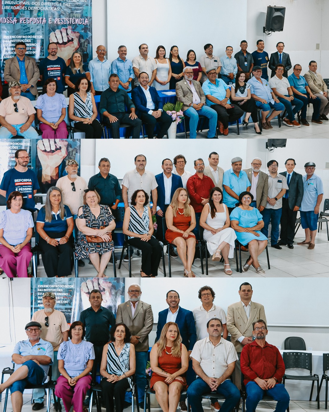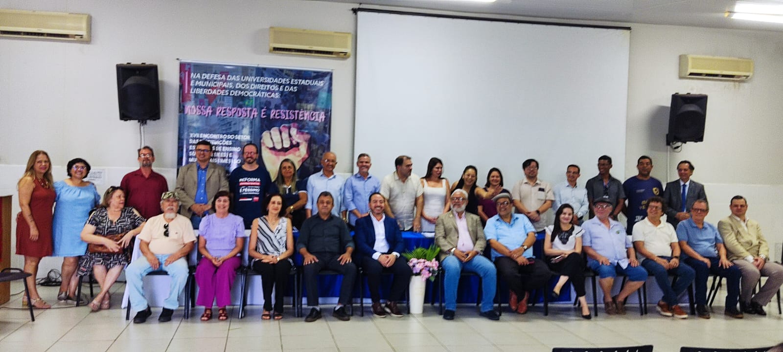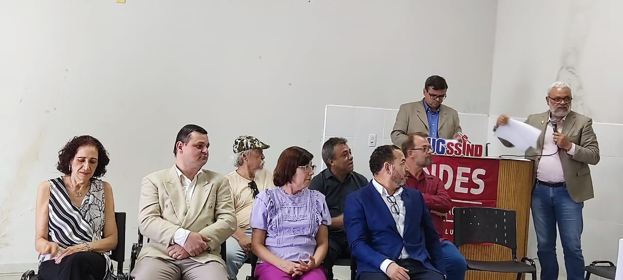 O momento mais aguardado da manhã foi a posse da nova Diretoria Executiva da APUG-SSind. Após a chamada nominal dos membros da diretoria, suplentes e integrantes do Conselho Fiscal, todos tomaram seus lugares reservados e, em seguida, o professor Antonio Jeronimo Netto declarou oficialmente empossada a Diretoria para o mandato 2025–2027.